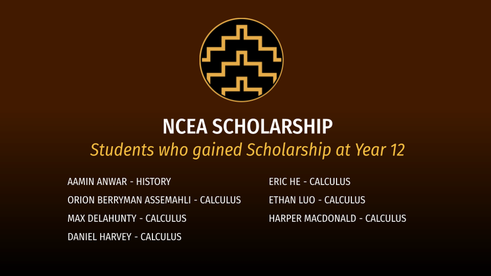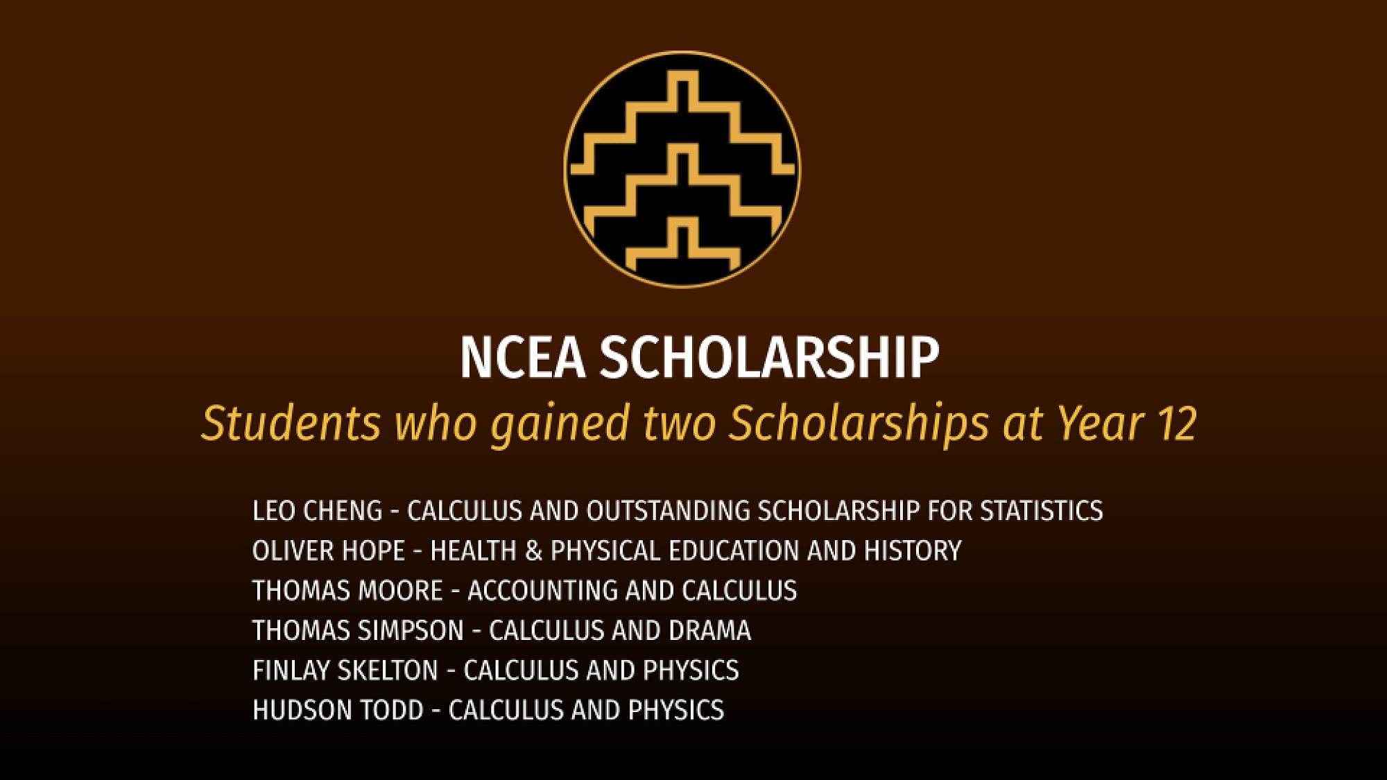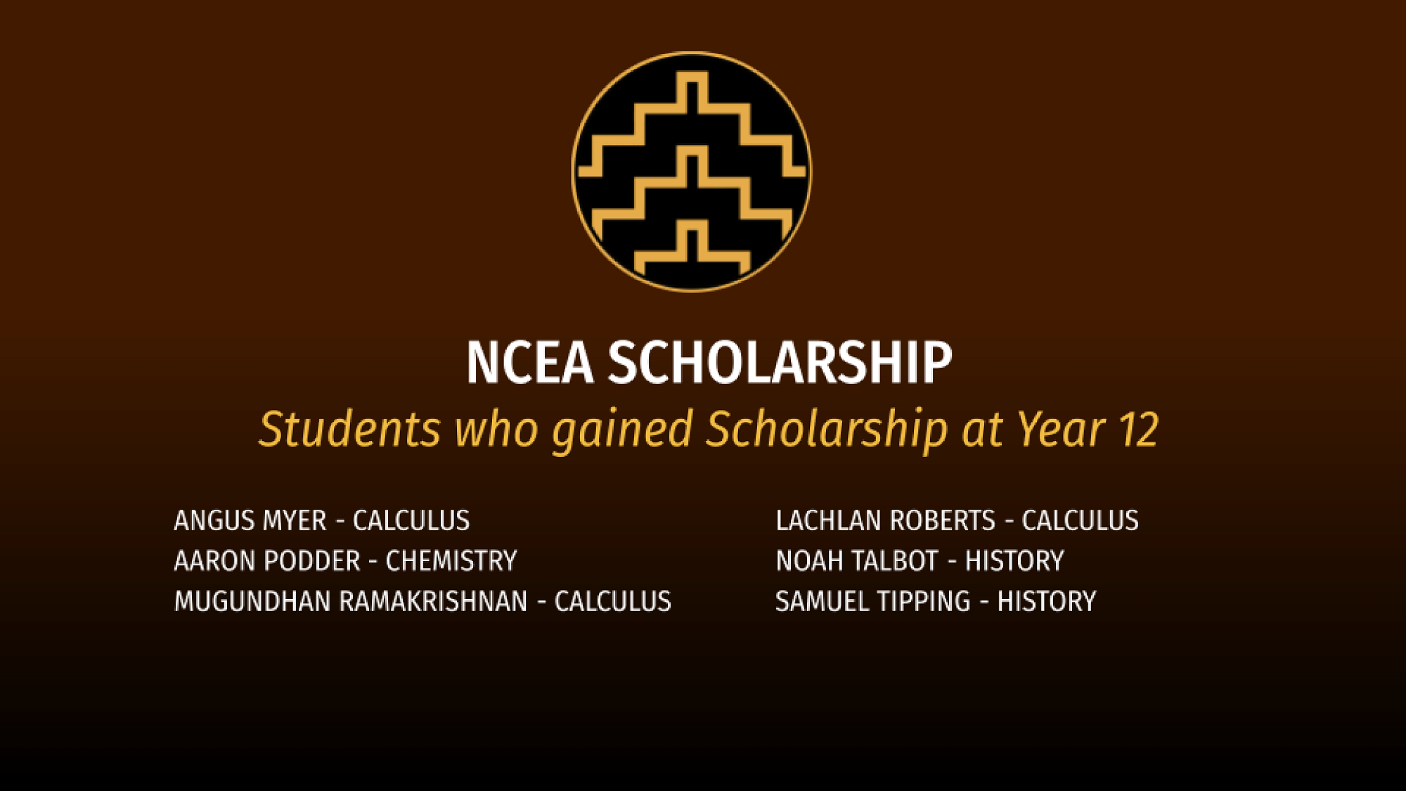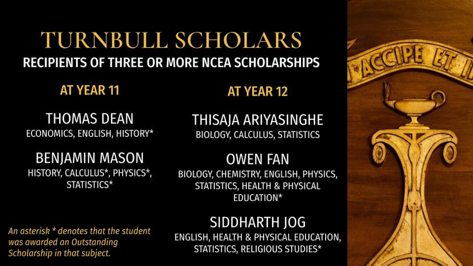 Special recognition went to our Turnbull Scholars. The Turnbull Scholar Awards were bequeathed in 1874 by successful Wellington businessman Walter Turnbull. He was the father of Alexander, whose library contains a collection of invaluable New Zealand books. Recipients of this award must have gained a minimum of three scholarship awards.