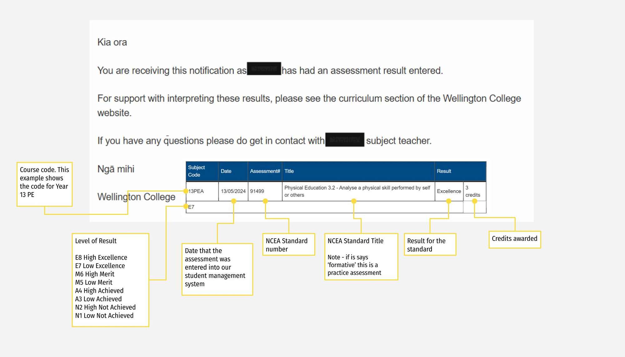 For NCEA assessments it will look like this: